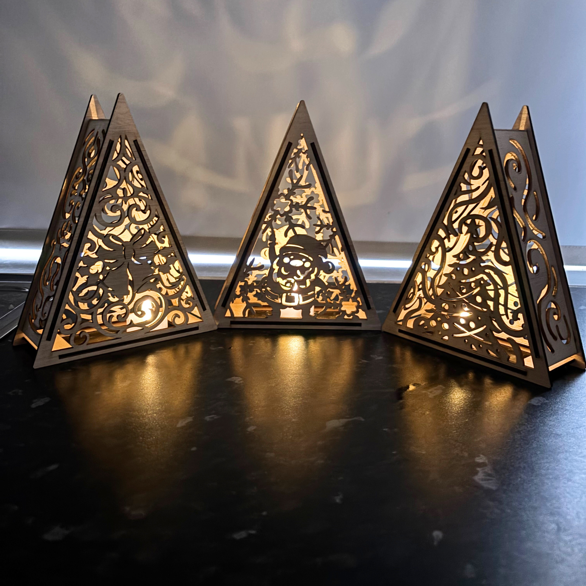 Each piece is precisely laser cut from high-quality wood, creating stunning patterns that glow beautifully when lit with an LED candle. The intricate cutouts cast magical festive shadows, adding warmth and charm to any Christmas setting.