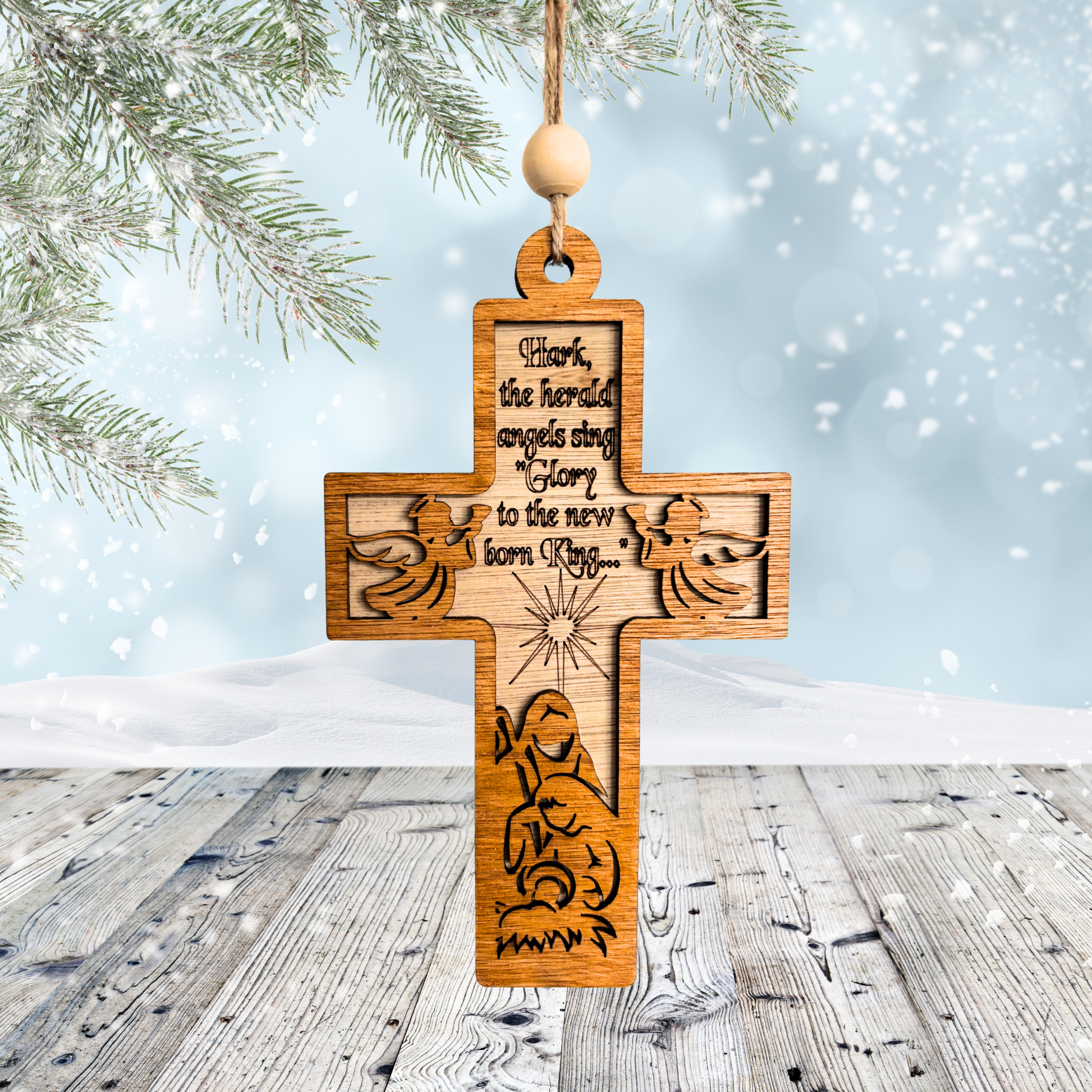 ✝️ Hark the Herald Angels Sing Wooden Cross Ornament | Christian Christmas Decor | Nativity Scene Wall or Tree Hanging | Religious Gift for Christmas